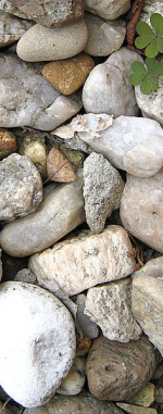 Die Steine wurden mehrschichtig mit Acryllacken besprüht, zum Teil bemalt, versiegelt und beklebt.